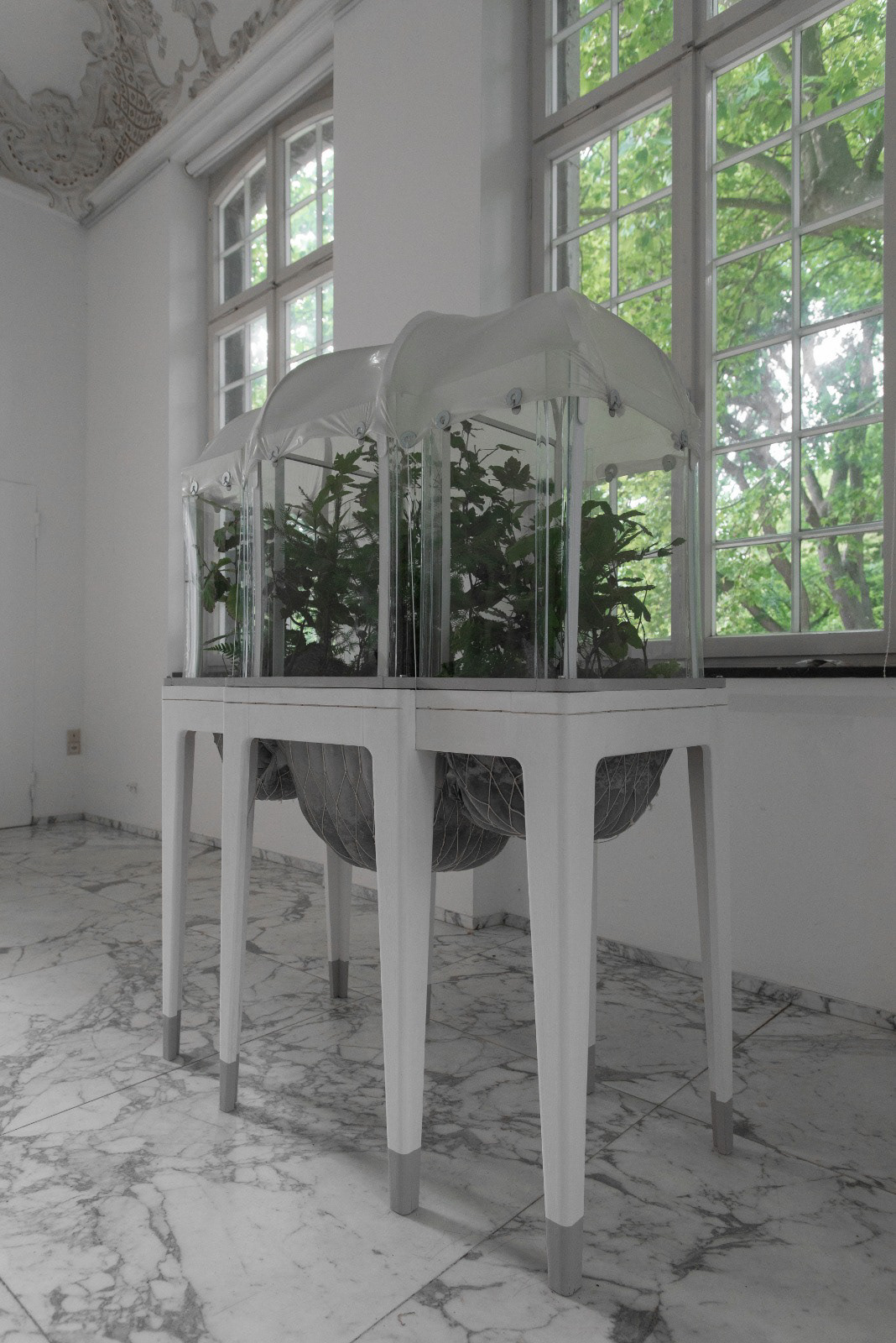 More extravagantly designed Wardian Cases became fashionable accessories in Victorian living rooms. In the Kersten Pavilion, two Cases were on display: a replica of a historical transport box and our design for an ornamental furniture piece.